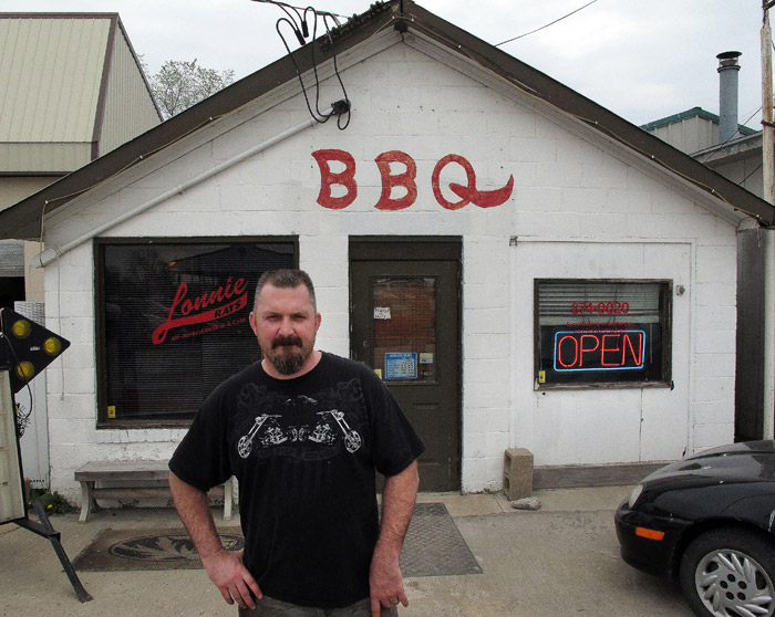 Longtime friend Jim Curley, a photojournalist in Columbia, drove us north 21 miles to Harrisburg, population 184, home of Lonnie Ray's BBQ. Mike Whiteley, owner and pit boss, has been cooking most of his life and opened Lonnie Ray's seven years ago.