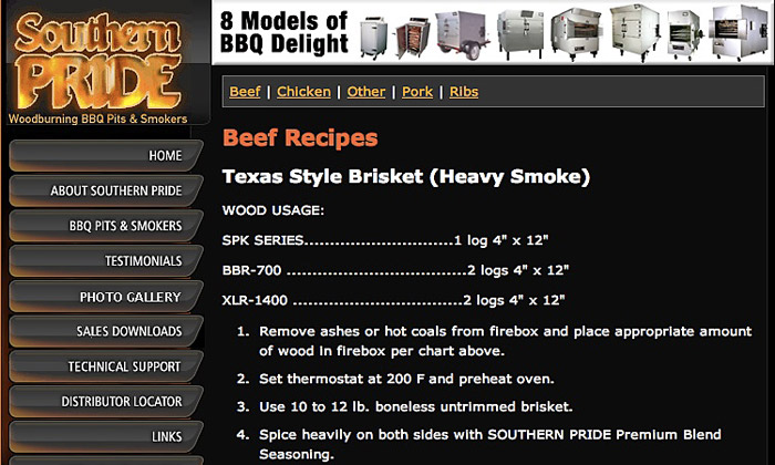 Southern Pride makes gas-fired commercial smokers, which burn a little wood for flavor, and offers cooking tips to its customers.